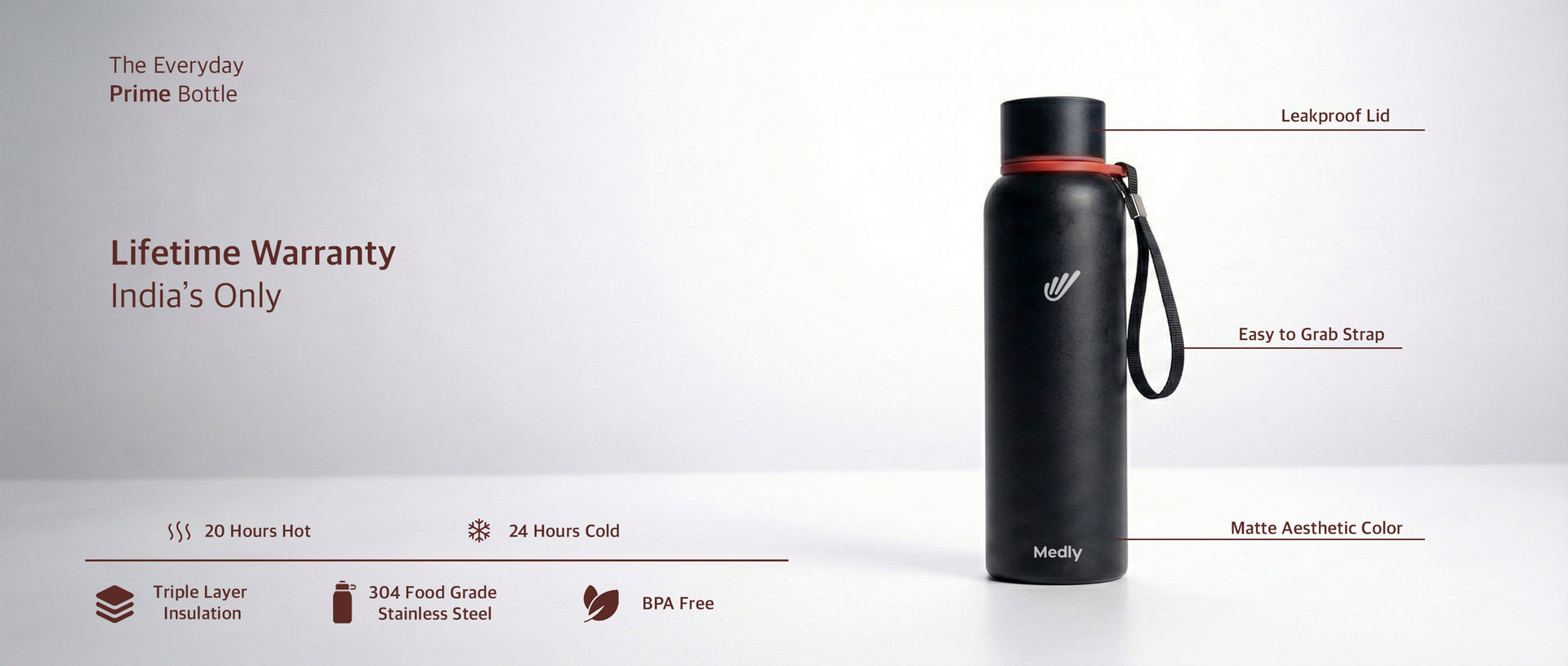 Freezing outside? Baking hot? Your drink doesn't care. Maintains temperature in any extreme, from -10°C to 50°C. T&C apply